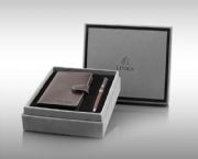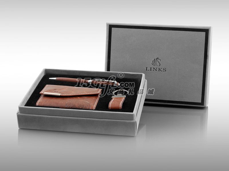 環(huán)保筆內(nèi)芯,卡包油邊平整,皮料手感極佳,鑰匙牌電鍍有光澤,手感極佳的黑色植絨吸塑,高檔灰色進口植絨包裝紙的外盒。